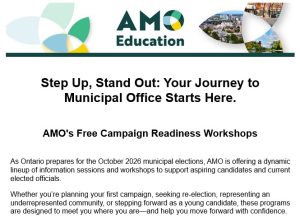 To learn more about Municipal Elections please visit the website –  Association of Municipalities of Ontario Municipal Elections