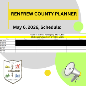 A planner from County of Renfrew will be back in our office Wednesday May 6, 2026, from 9:30 am to 3 pm.